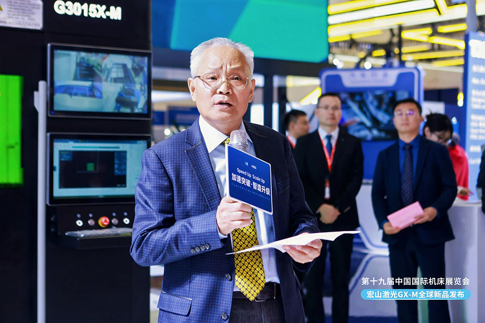 中國機(jī)床工具工業(yè)協(xié)會(huì)執(zhí)行副理事長王黎明在致辭中表示:“宏山激光推出的G3015X-M高速光纖激光切割機(jī),體現(xiàn)了中國激光裝備在性能突破與智能化方向的強(qiáng)勁創(chuàng)新力。其持續(xù)推動(dòng)綠色制造與高質(zhì)量發(fā)展方向的技術(shù)成果,不僅滿足了全球客戶對高效裝備的迫切需求,更進(jìn)一步提升了中國品牌在國際市場上的影響力與話語權(quán)。”